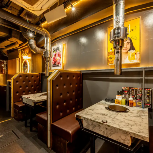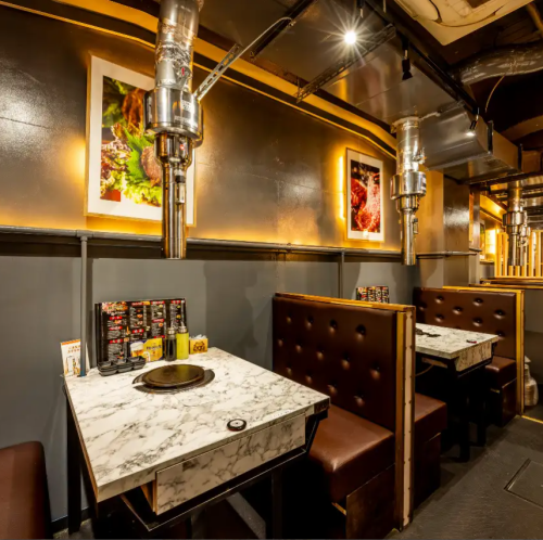 【4名様掛けテーブル席×8卓】コンロ付きのお席は、お肉を焼きながら楽しくお食事や会話を満喫いただけます♪便利で使いやすい4名様席を数多くご用意しておりますので、大久保駅周辺の焼肉店をお探しの際はお気軽に当店まで★